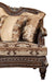 Cosmos Furniture's Alexa traditional style Sofa in cherry finish wood. The Alexa Sofa features decorative molding trim and it is complemented by comfortable seating made with faux leather and chenille fabric. This sofa is perfectly suitable for any living room environment. Throw pillows are included. Matching pieces are sold separately.
