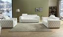 Cosmos Furniture's Charlise White modern style Sofa in white faux leather. Enjoy a unique design while creating comfortable surroundings for your family with this Charlise White Sofa. Covered in cozy leather gel, it features button tufted tight back and all crystal tufted buttons. Every seat has its convenience of a manual adjustable headrest. Matching pieces are sold separately.