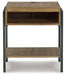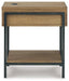 Beautiful to behold, this urban contemporary end table is loaded with high style and convenience. The wood sports a light, natural-looking finish that provides a dramatic contrast to the black metal frame. Its open cubby is perfect for stowing away books and magazines. A cleverly placed AC/USB charging port on the top lets you power up without moving a muscle.
