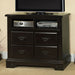 With country charm and rustic beauty, this media chest brings in a calm and classic feel to any bedroom. Crafted of solid woods and veneer, the warm tones of the american oak finish help to create a quiet and relaxing mood. Also available in espresso finish.