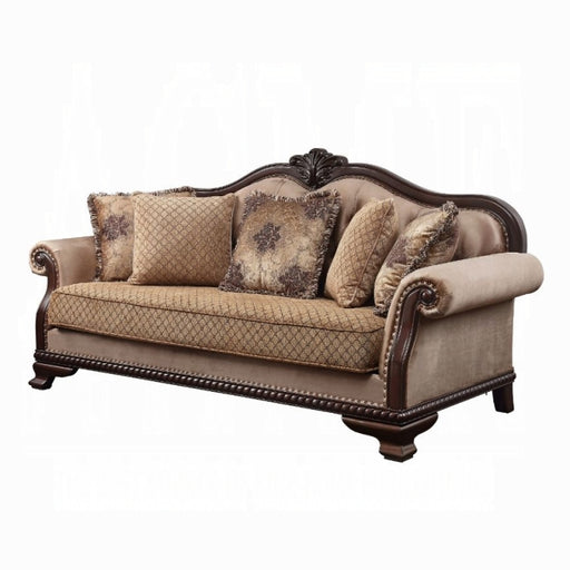 ACME EastThe Chateau De Ville sofa set surrounds you in a warm and cozy embrace. Wood carved details with nail-head accent embody a timeless look with an o...
