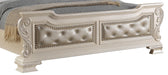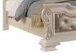 Victoria Traditional Style Queen Bed in Off-White finish Wood, 72 x 69 x 89, 191lbs. Cosmos Furniture's Victoria traditional style Queen Bed in antique off-white wood is an impeccable example of truly memorable luxurious transitional design. Your bedroom will be dignified fashion with this center piece. This arched panel bed has a beautiful designed headboard with intricate carving around the border. The footboard is perfectly match with crystal tufting and carvings details. Matching Nightstand and other bedroom pieces are sold separately. - Traditional Style Queen Bed - In Antique Off-White finish Wood - Faux Leather Upholstered Headboard and Footboard - Crystal tufting - Nail Head trim - Scroll Carved Details - Matching Nightstands sold separately - Matching bedroom pieces sold separately - Mattress Not Included - Box-spring needed - -