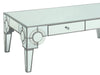 Cosmos Furniture's Zoe modern style glass Coffee Table with silver fiinish. Shine and polish your dining room for pure glamour. Tempered glass and mirrored panels create a sophisticated elegance while the silver finish molds the details together for a luxurious dining table. The table is wide enough to make any room look grand, while carved tapered legs steadily support the design. The table blends with your interior furnishings and color combination and complements any personalized home decor, giving it a modern outlook. This table is perfect for all room sizes whether big or small and can be kept in your living room, study, foyer, or bedroom. Matching End Table is sold separately.