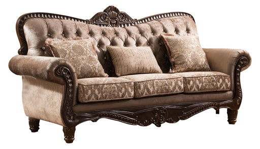 Cosmos FurnitureOprah Traditional Style Sofa in Metallic finish Wood, 49 x 39 x 89, 182lbs. Cosmos Furniture's Oprah traditional style Sofa is suede and printed u...