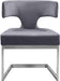Bring artful living to your dining room with this Alexandra velvet dining chair. This sumptuously appointed chair has a back design that cradles your body as you sit, making dinner time an experiment in total relaxation. Soft grey velvet upholstery covers the back and the plumply padded seat, ensuring you get extra cozy while you eat. A rich gold metal base adds to the chair���s beautiful durability.