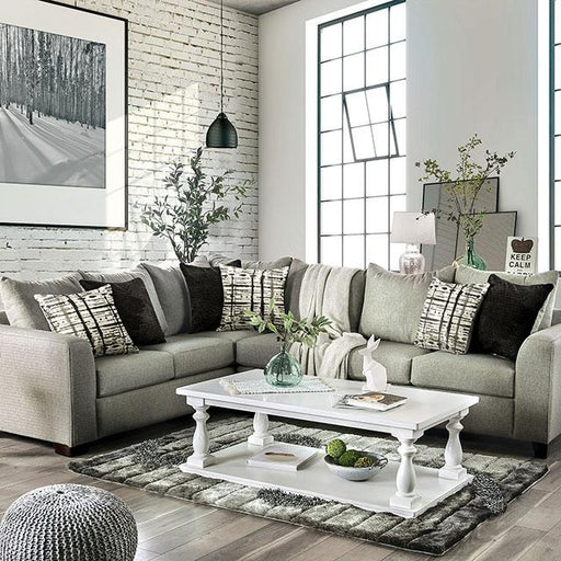 Upgrade your living room with the classic comfort of this contemporary sofa from the Acamar Collection. The gray linen-like fabric is stuffed full ...