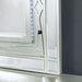 MANAR Cal.King Bed, 90 1/4"L X 79"W X 62 1/4"H, 198lbs. The glamor is in the details of this bedroom set from the Manar Collection. The headboard is upholstered in a faux leatherette, button-tufted with crystal-acrylic buttons, and embedded with a LED light, creating a sparkling aesthetic. The matching pieces feature a decorative, circular pattern, only adding to opulence of the design. Your bedroom will be a place to pamper yourself with this set.