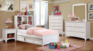 MARILLA Full Bed, 86"L X 57 3/4"W X 46 5/8"H, 123.2lbs. With this stylish and functional bed, your child gets everything they need in their bedroom. The young bookworm will enjoy the headboard with built-in bookcase, while the action-figure fanatic will have plenty of open shelves to display their toys! Optionally, space under the bed could be devoted to additional sleeping or storage space with the matching trundle or drawers. Matching case goods feature spacious drawers that are reinforced with a sturdy dovetail construction, making sure they meet your child's needs growing up.