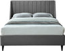 Snuggle up to a pet or other loved one in this richly upholstered Eva grey velvet queen size bed for the ultimate in rest and relaxation. The wing back headboard has cushioned vertical deep channel tufting, and both the side rails and footboard are upholstered too for your comfort. Tapered black wood legs match the upholstery and support this contemporary bed, elevating it sufficiently that you can store items underneath.