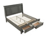 This bedroom furniture piece is designed with both style and practicality in mind. Available in queen and king sizes, it offers two-drawer footboard storage for your convenience. Crafted from a combination of solid and manufactured wood, it features a rustic wire brush gray finish that adds charm to your space.. Available in queen and king sizes. Features 2-drawer footboard storage. Crafted from solid and manufactured wood. Rustic wire brush gray finish for added character.