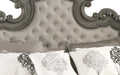 Cosmos Furniture's Silvy transitional style Queen Bed in gray finish wood is the perfect accent to create the royal statement for your bedroom. This 4-post bed crafted with intricate detailed carvings and a gorgeous lightly brush kissed gold on salvaged natural wood finish accentuates this special bed. The hand applied brush finish enhances the beauty of the detailed woodwork carvings. Exceptionally beautiful bed features button tufted upholstery with nail head trim on the headboard. Elaborated detailing on this bed will surely bring true splendor into your home. Crafted with a transitional it is an ideal for someone looking for a contemporary traditional look. This fashionable bed will fuse with the surrounding decor and transform a room from ordinary into something interesting and sophisticated. Matching Nightstands and other bedroom set pieces are sold separately to complete the entire look of your excellent taste.